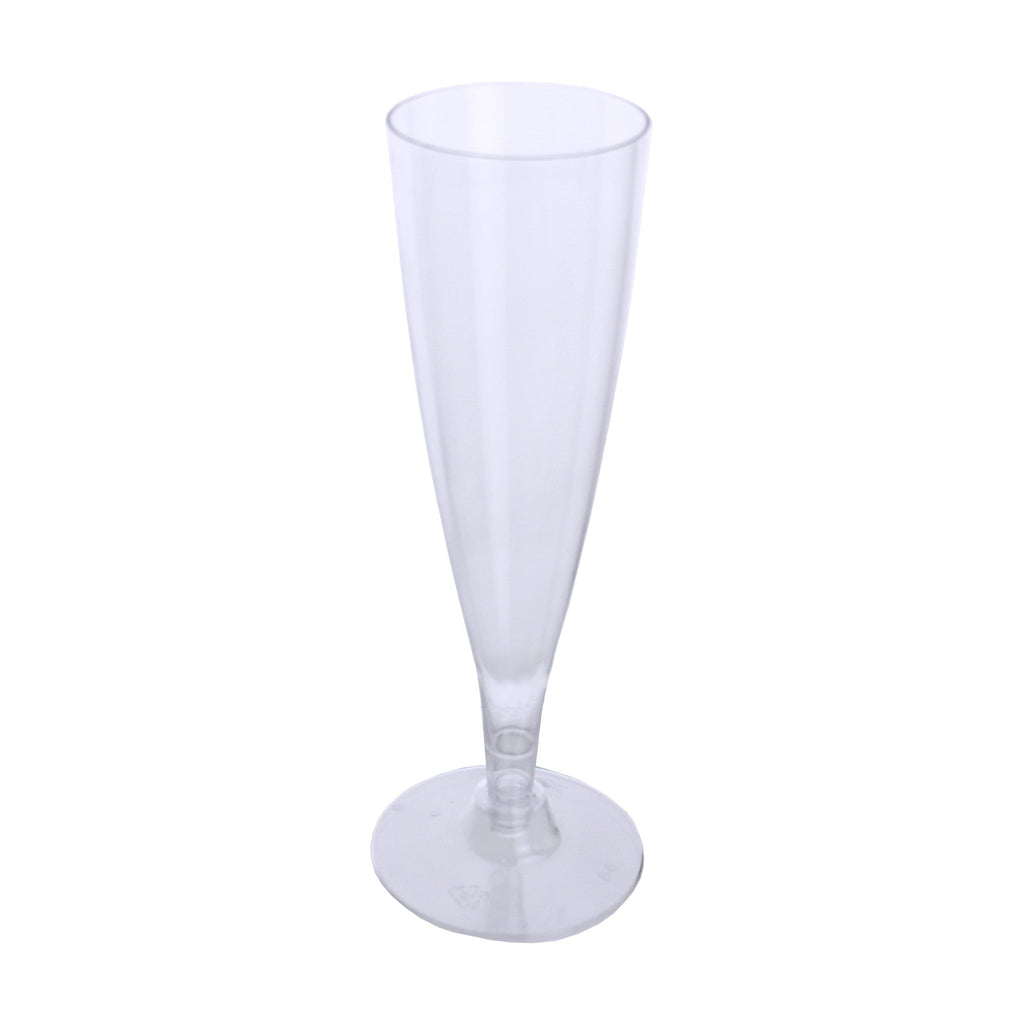 Whether you're celebrating New Year's Eve or weddings, these elegant plastic champagne glasses will make an impression on your guests. Whether it's champagne, cocktails, or sparkling wine you've got to celebrate with these plastic champagne glasses! Add some class to your next party with these champagne glasses, please drink responsibly. Length: 7" Width: 2.5" 12 Pcs