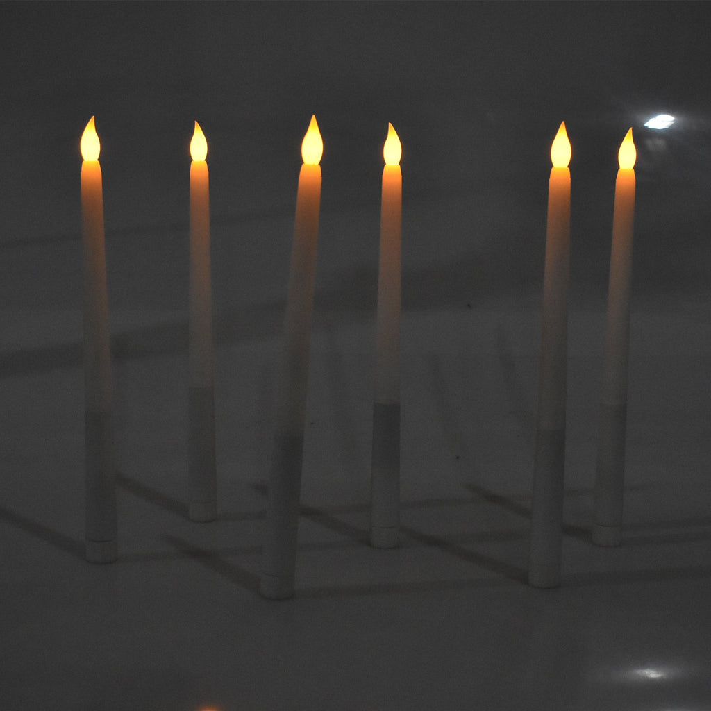 LED Plastic Flickering Taper Candle, White, 11-Inch, 6-Count