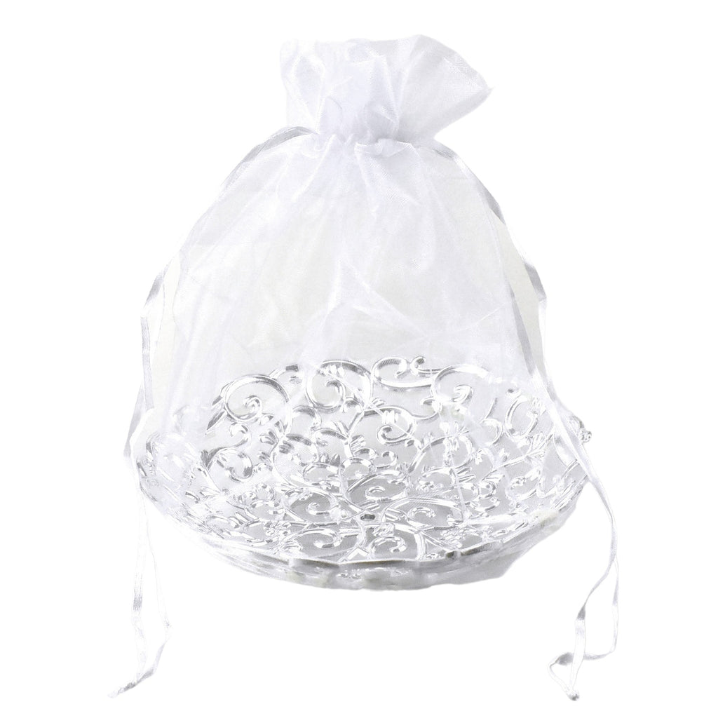 Organza Wrap Basket with Plastic Swirl Tray, 8-inch