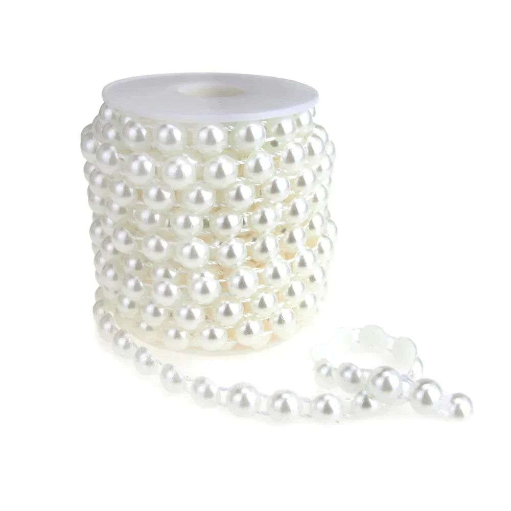 Plastic Flat Back Craft Pearl String, 10mm, 9-Yards