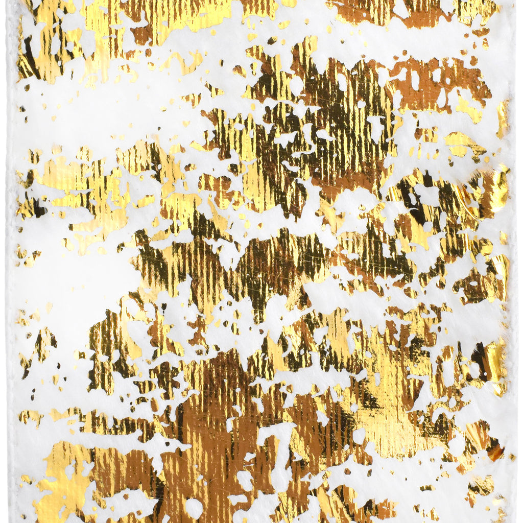 Christmas Faux Fur Metallic Gold Flakes Wired Ribbon, 4-inch, 5-yard