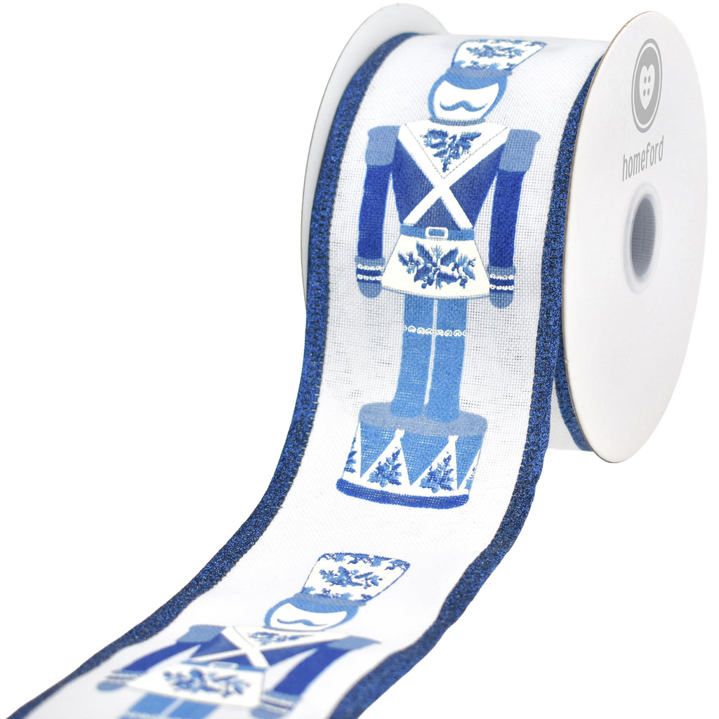 Bring the magic of Christmas to life with our Glittered Chinoiserie Nutcracker Wired Ribbon. This ribbon combines the timeless charm of the beloved nutcracker with the elegance of Chinoiserie art, finished with shimmering glitter accents that glisten beautifully in holiday lighting. The wired edges make it easy to shape and style, perfect for embellishing wreaths, tree toppers, gift wrap, and more.