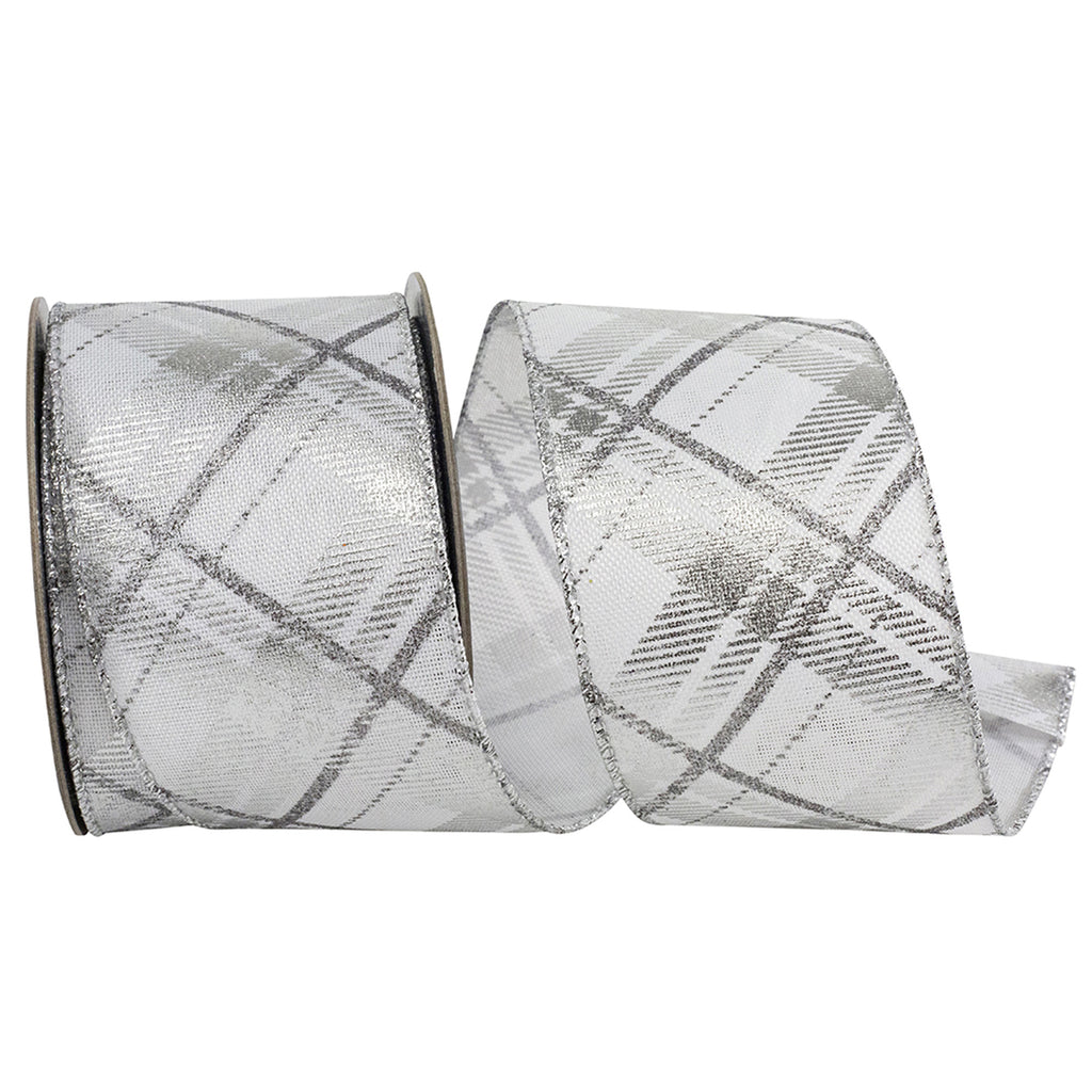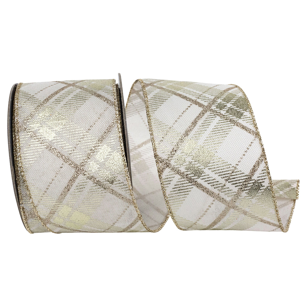 Christmas Metallic Plaid Twill Wired Ribbon, 2-1/2-inch, 10-yard