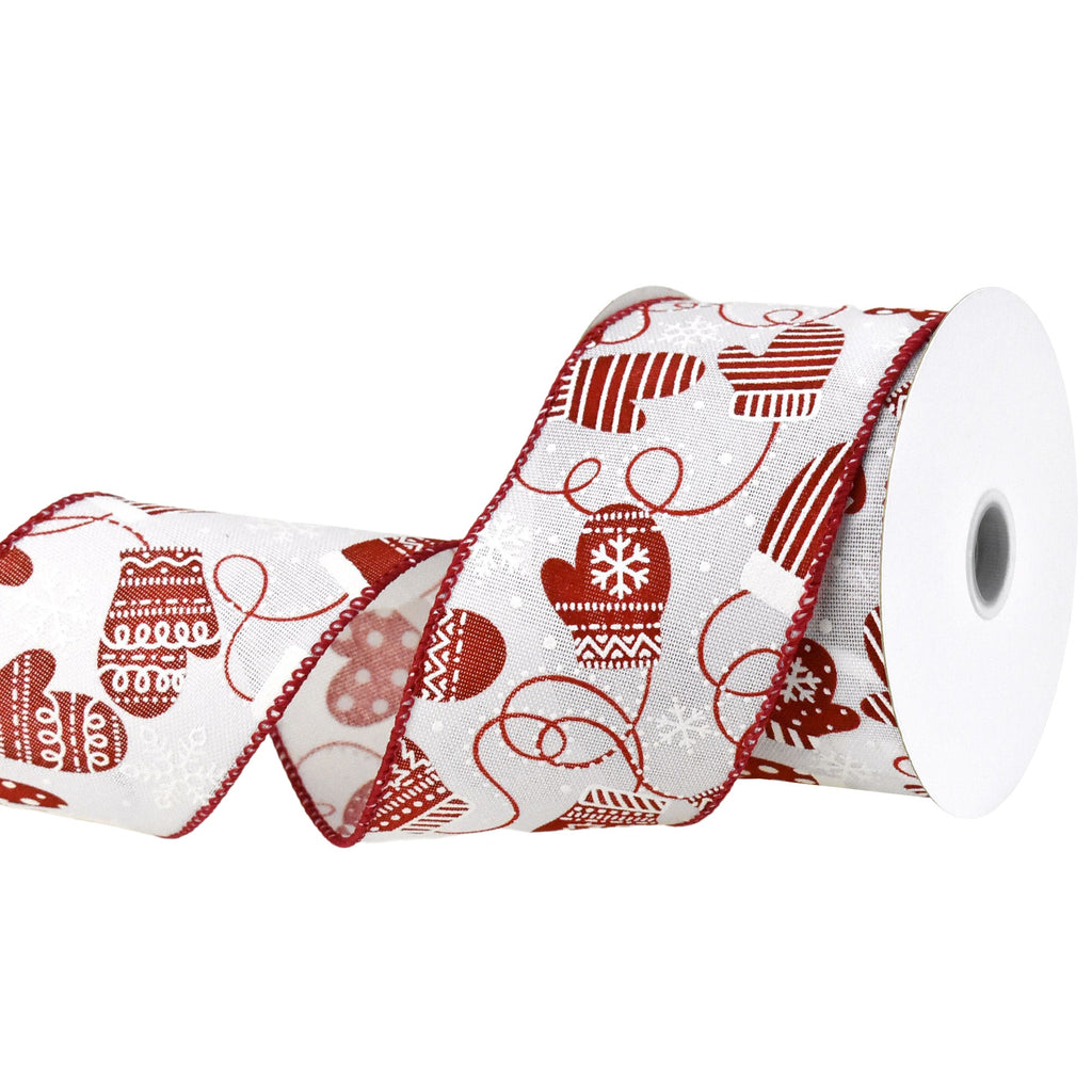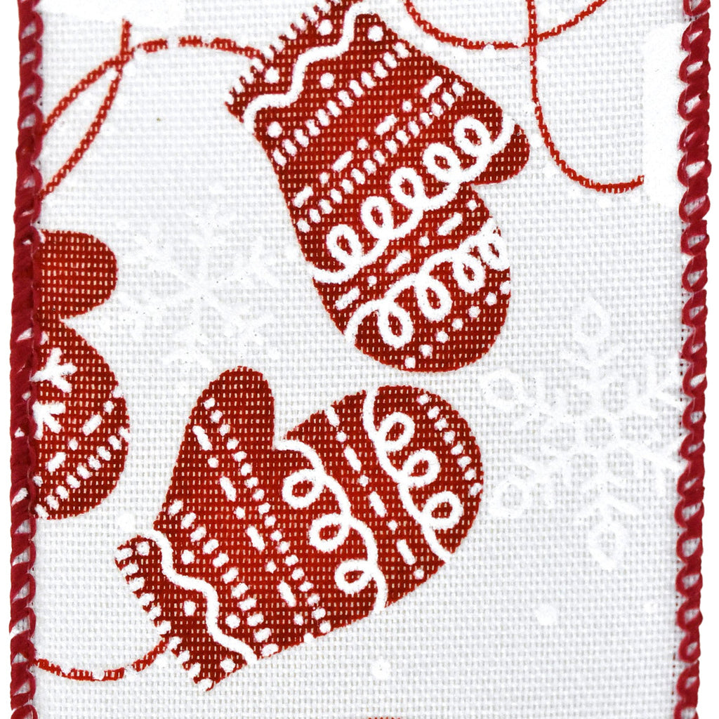 Christmas Mittens Faux Linen Wired Ribbon, 2-1/2-inch, 10-yard