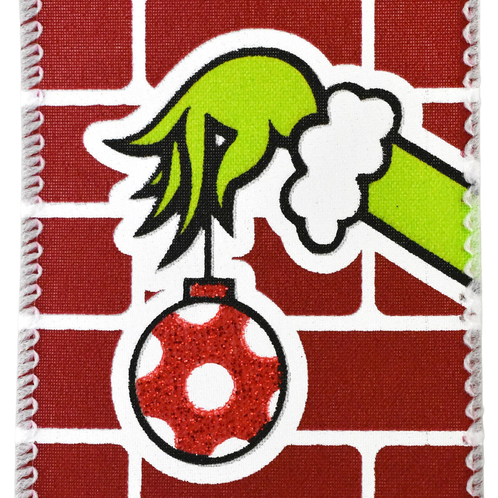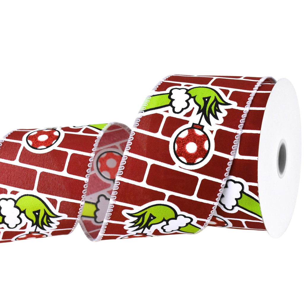 Christmas Monster Hand Brick Wall Wired Ribbon, 2-1/2-inch, 10-yard