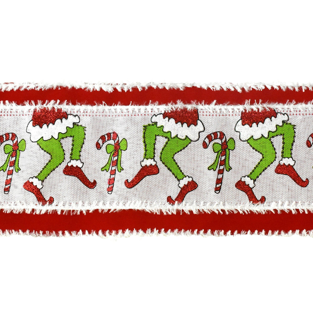 Christmas Monster Legs Velvet Edge Wired Ribbon, 4-Inch, 10-Yard