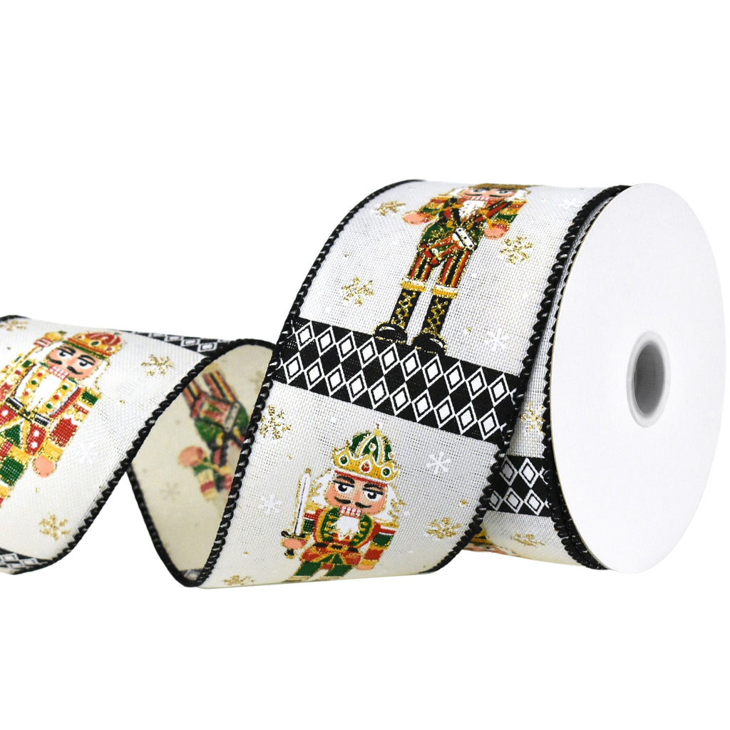 Christmas Nutcracker Harlequin Faux Linen Wired Ribbon, 2-1/2-inch, 10-yard