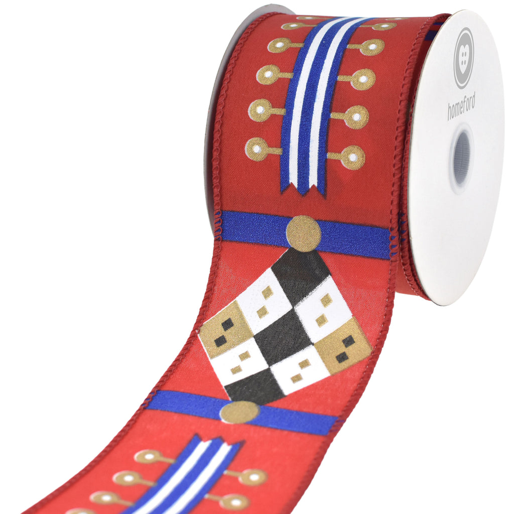 Christmas Nutcracker Uniform Pattern Wired Ribbon, 2-1/2-inch, 10-yard