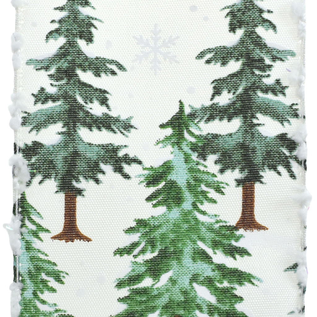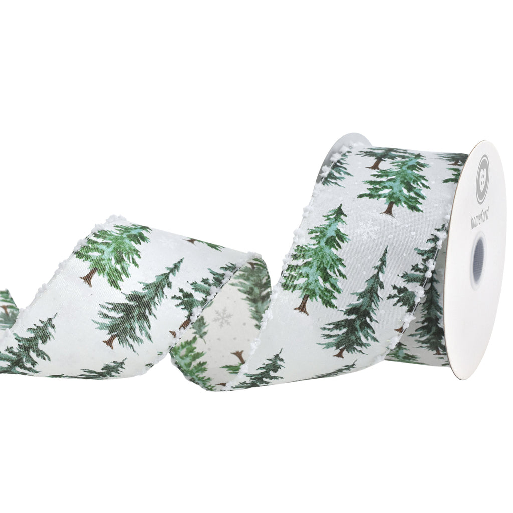 Christmas Pine Trees Snowball Edge Satin Wired Ribbon, 2-1/2-inch, 10-yard