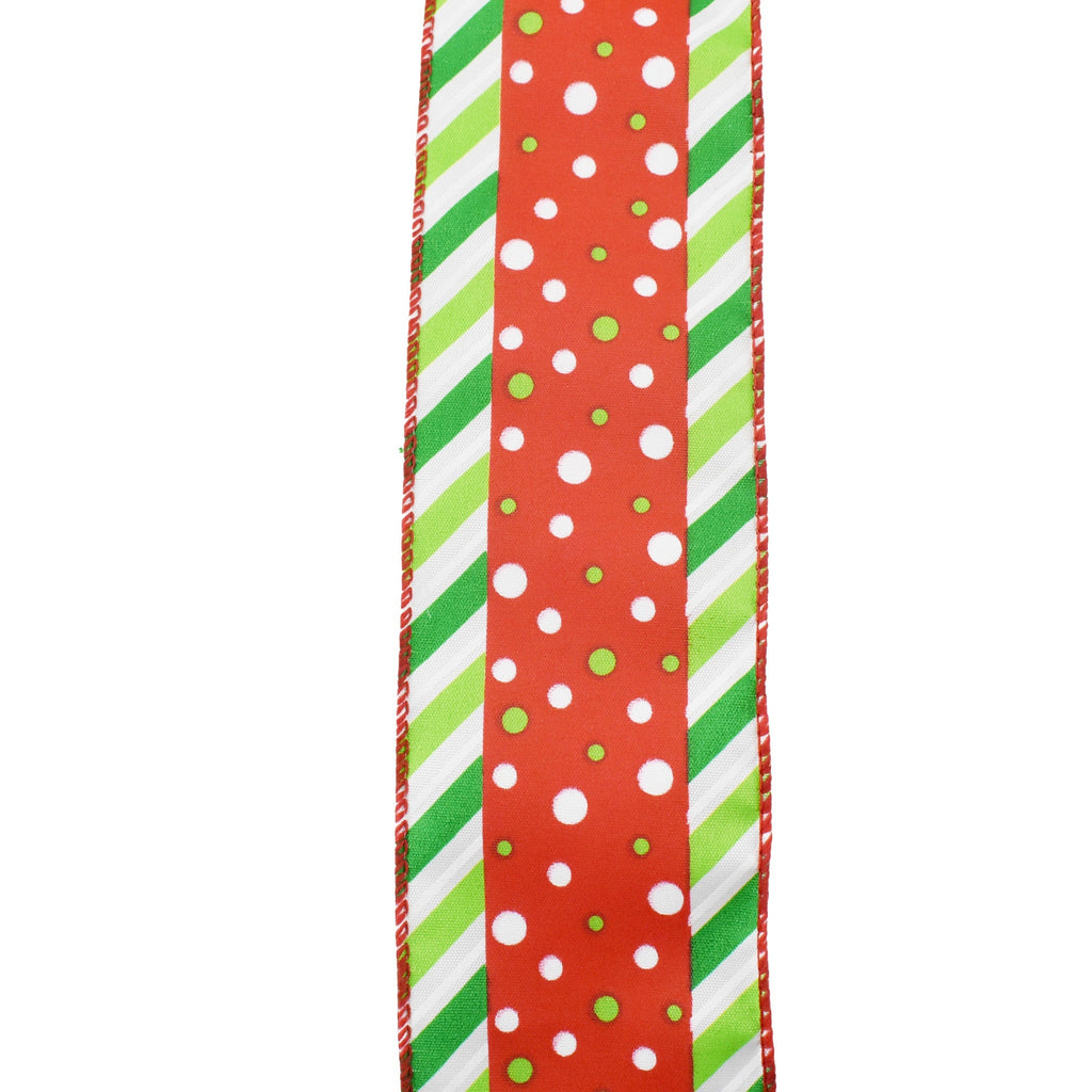 Christmas Polka Dots and Diagonal Ticking Wired Ribbon, 2-1/2-Inch, 10-Yard