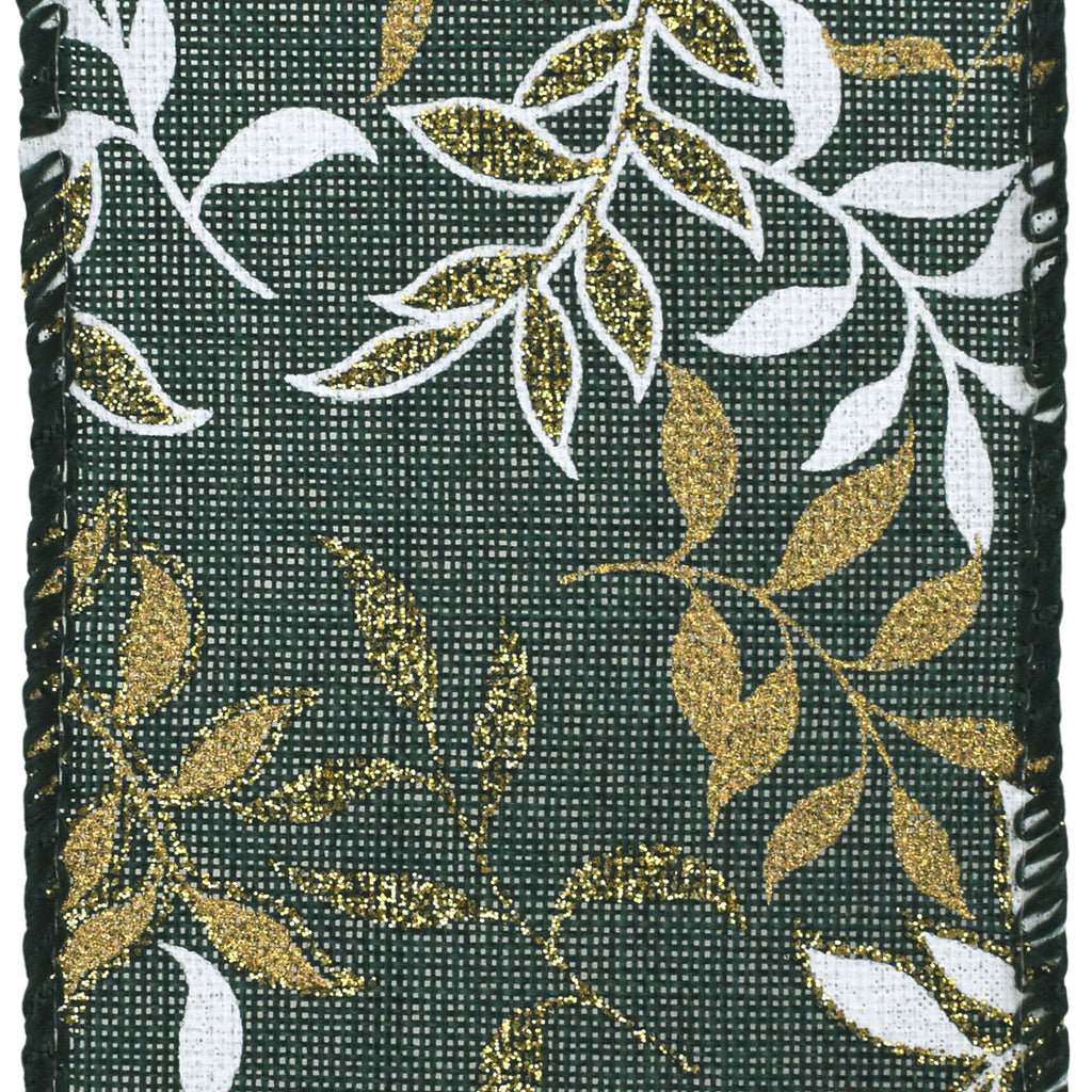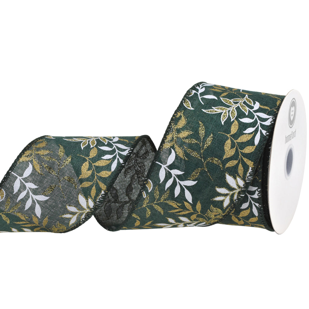 Christmas Pressed Branches Faux Linen Wired Ribbon, 2-1/2-inch, 10-yard