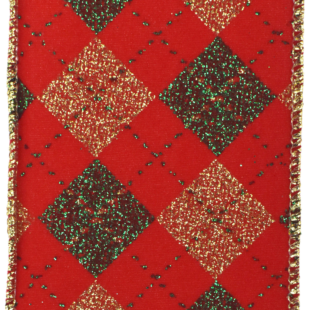 Christmas Velvet Argyle Diamond Wired Ribbon, 2-1/2-inch, 10-yard