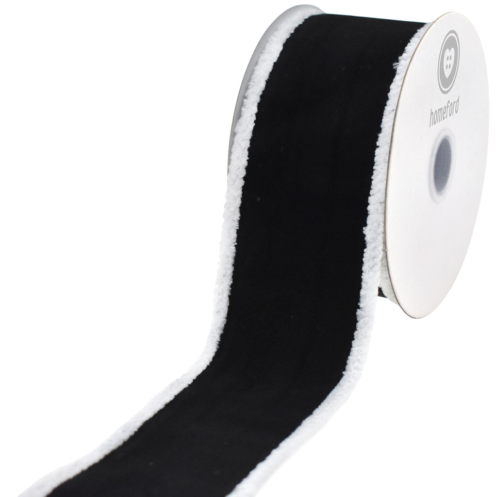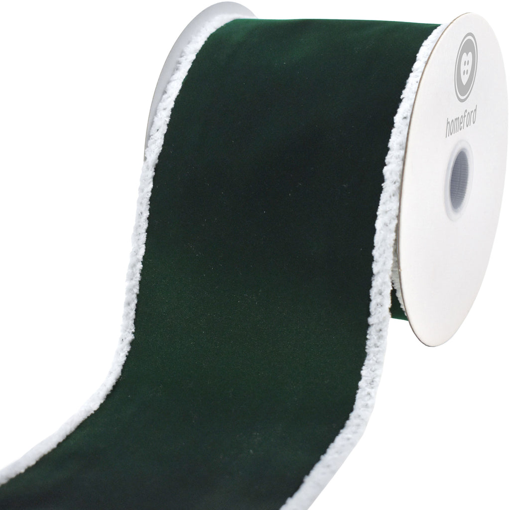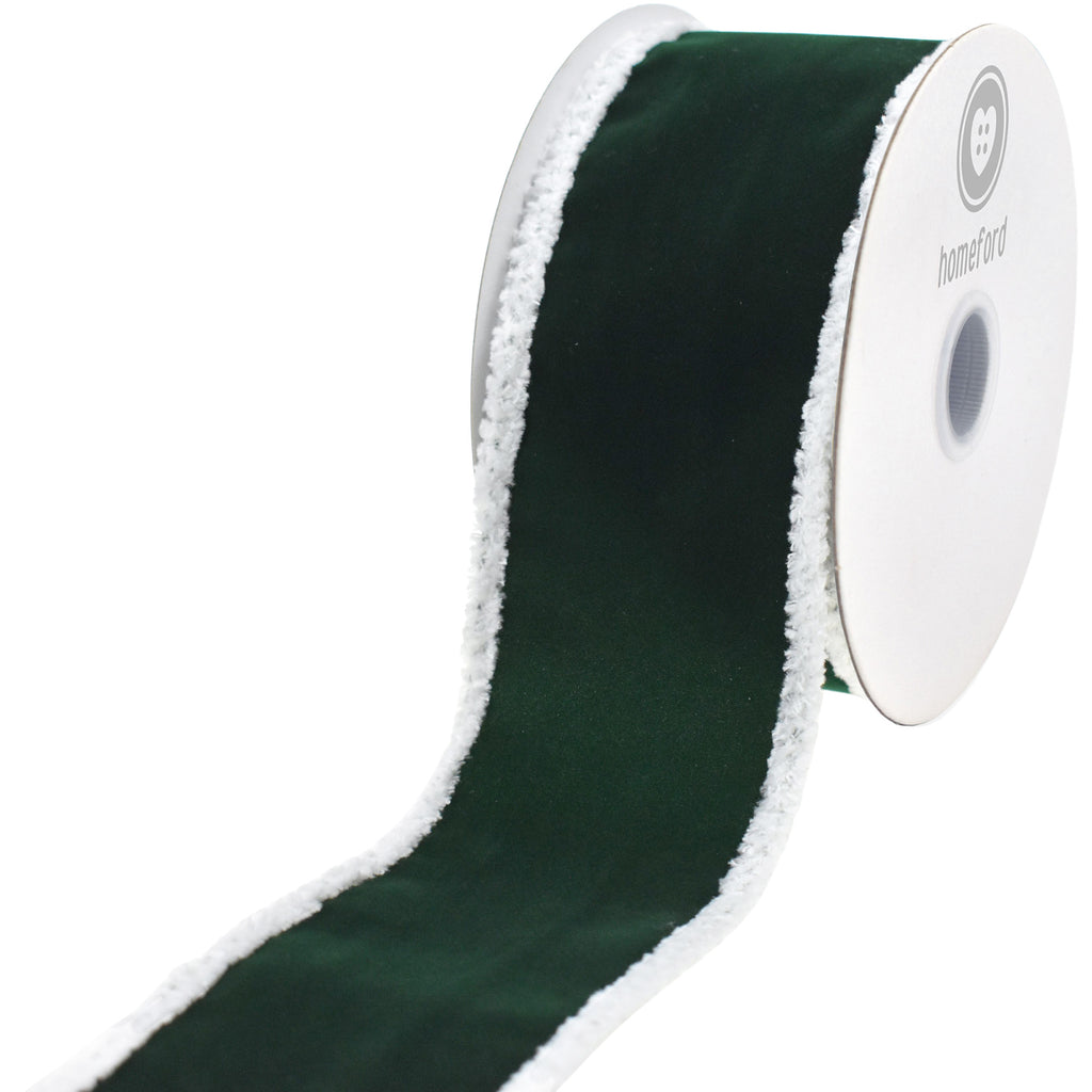 Christmas Velvet Fuzzy Edge Wired Ribbon, 10-yard