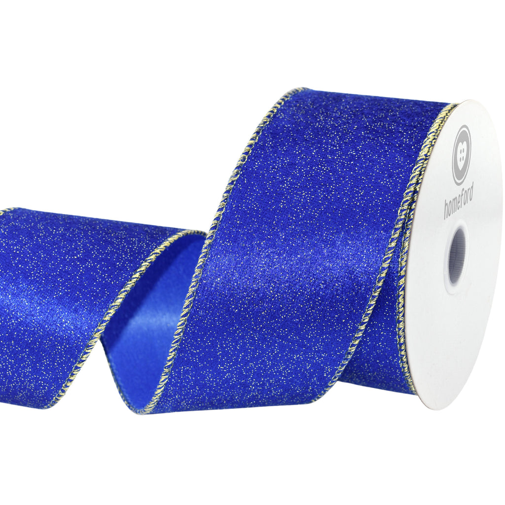Christmas Velvet Glitter Styled Wired Ribbon, 2-1/2-inch, 10-yard, Royal Blue