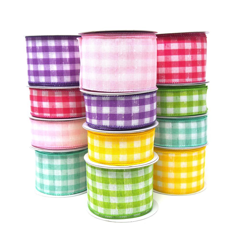 Colorful vibrant gingham checkered wired linen ribbon. The perfect ribbon this spring season for all your arts & craft projects, spring wreaths, scrapbook decorations and so much more. The possibilities are endless. Ribbon has wired edges for easier shaping.