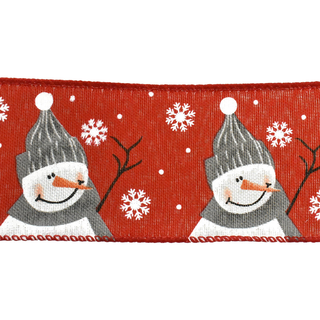 Cute Christmas Snowman Faux Linen Wired Ribbon, 2-1/2-Inch, 10-Yard