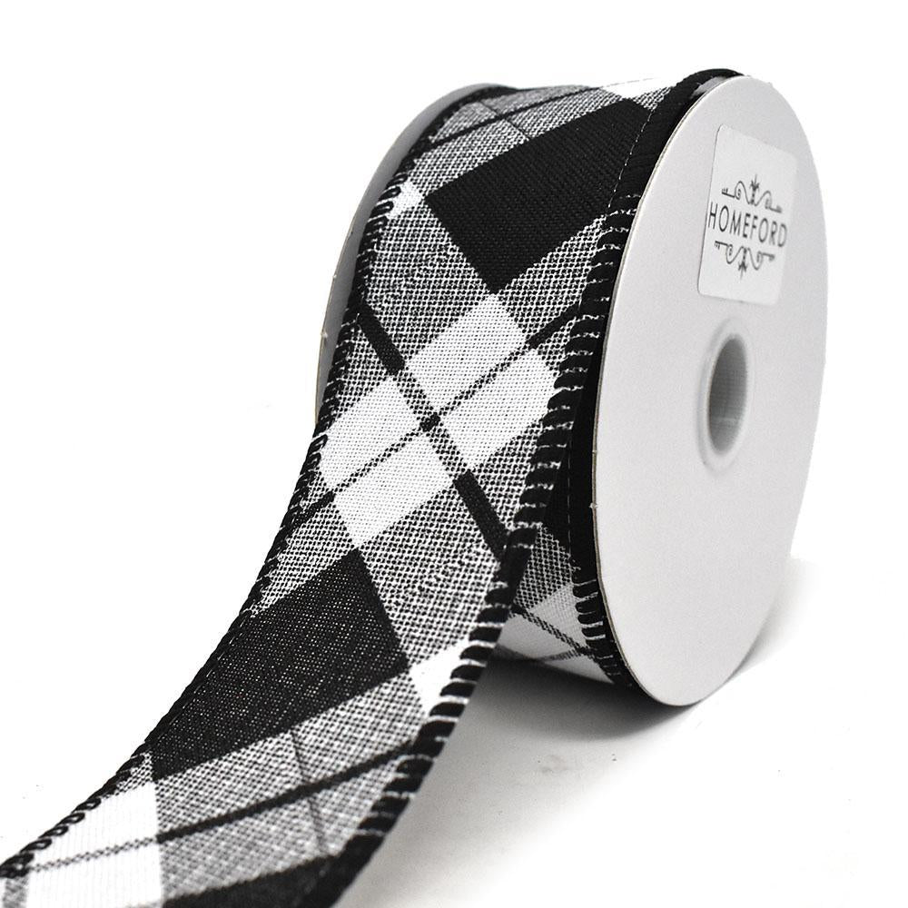 Diagonal Plaid Patterned Wired Ribbon, 1-1/2-Inch, 10-Yard
