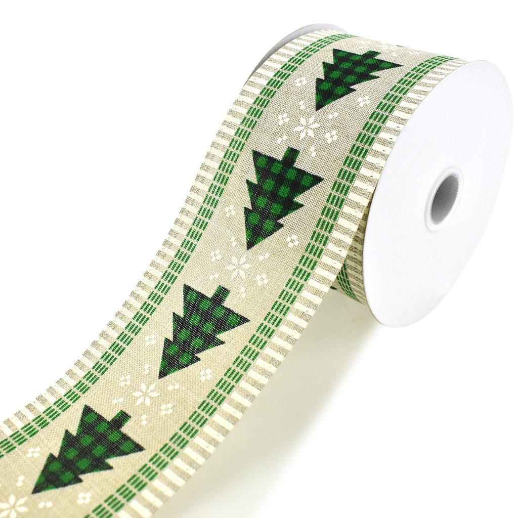 Plaid Christmas Tree Dash Edged Wired Ribbon, 2-1/2-Inch, 10-Yard