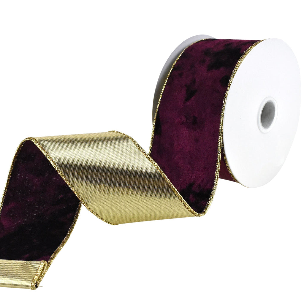 Christmas Velvet and Gold Back Wired Ribbon, 2-1/2-Inch 10-Yard