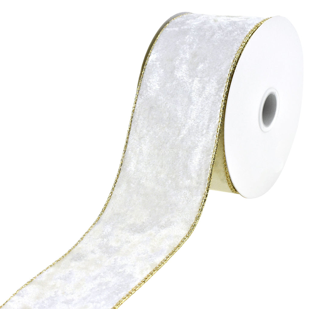 Add your own touch to any project! This ribbon features a double sided pattern of plush velvet in the front and shiny gold in the back for the perfect finishing touch to any home decor, DIY, or craft project you use these with. Take your decorating or DIY to the next level! Note: Contains wire Length: 10 yd Width: 2.5"