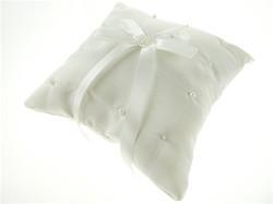 A fancy white pillow, fluffy, and soft to the touch. This pillow can be used as a ring bearer pillow for weddings, bridal showers, anniversaries and the like.