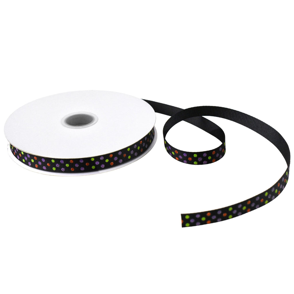 Halloween Polka Dots Grosgrain Ribbon, 3/8-inch, 10-yard