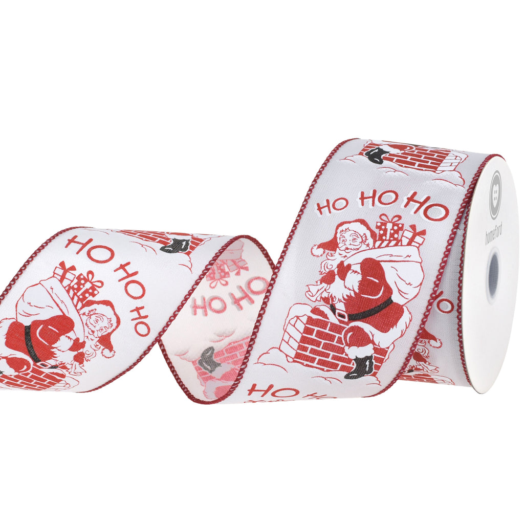 Christmas Santa Chimney Satin Wired Ribbon, 2-1/2-inch, 10-yard