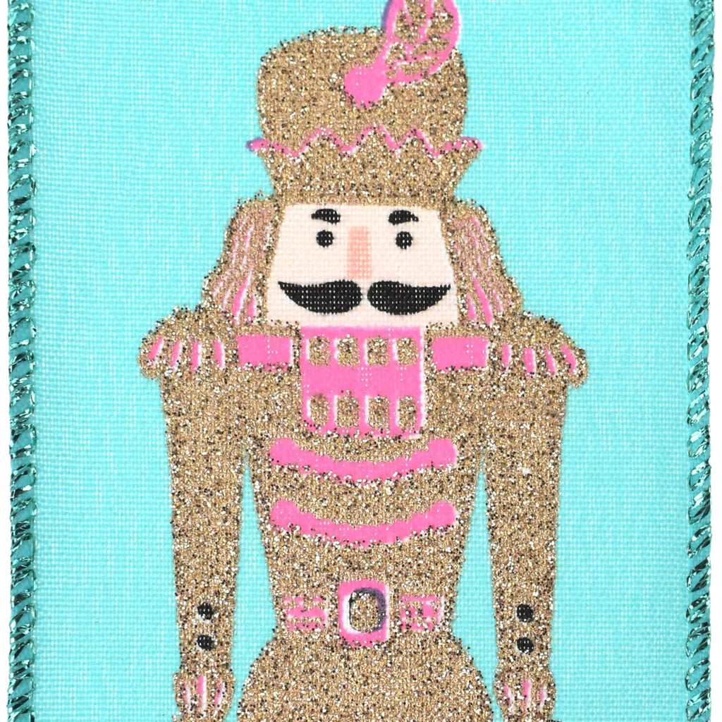 Christmas Glittered Pink Nutcrackers Satin Wired Ribbon, 2-1/2-inch, 10-yard, Teal
