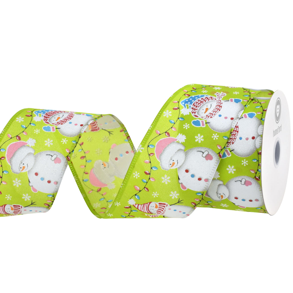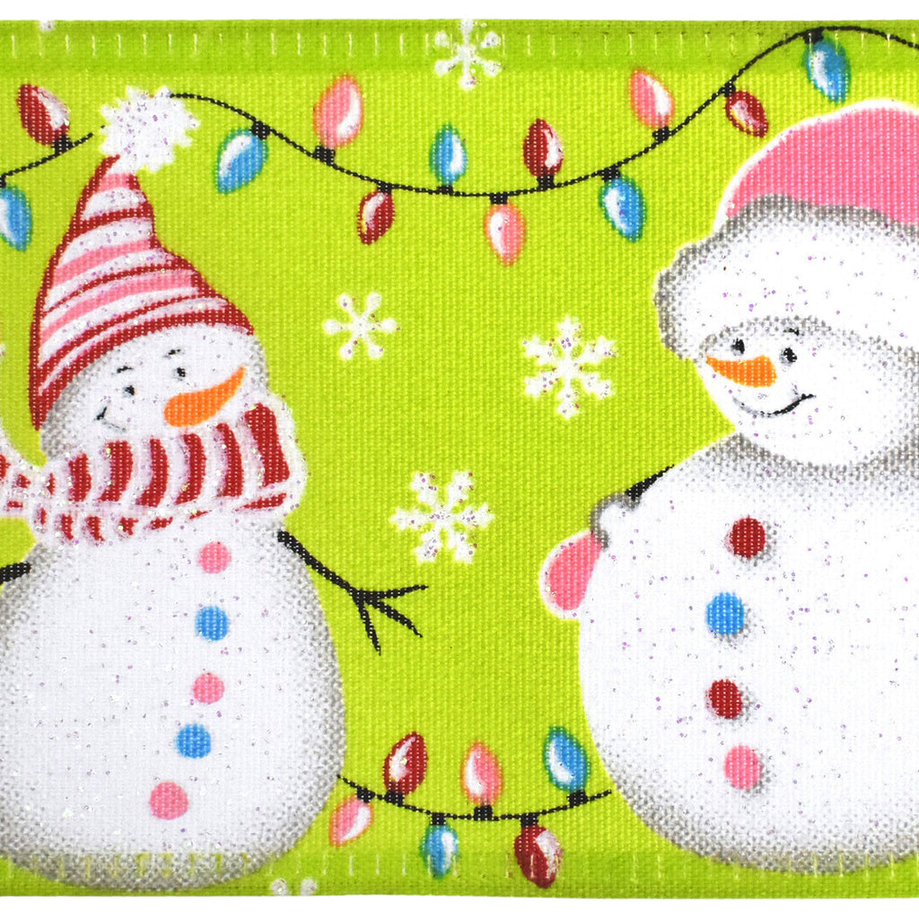 Christmas Lights Snowmen Satin Wired Ribbon, 2-1/2-inch, 10-yard