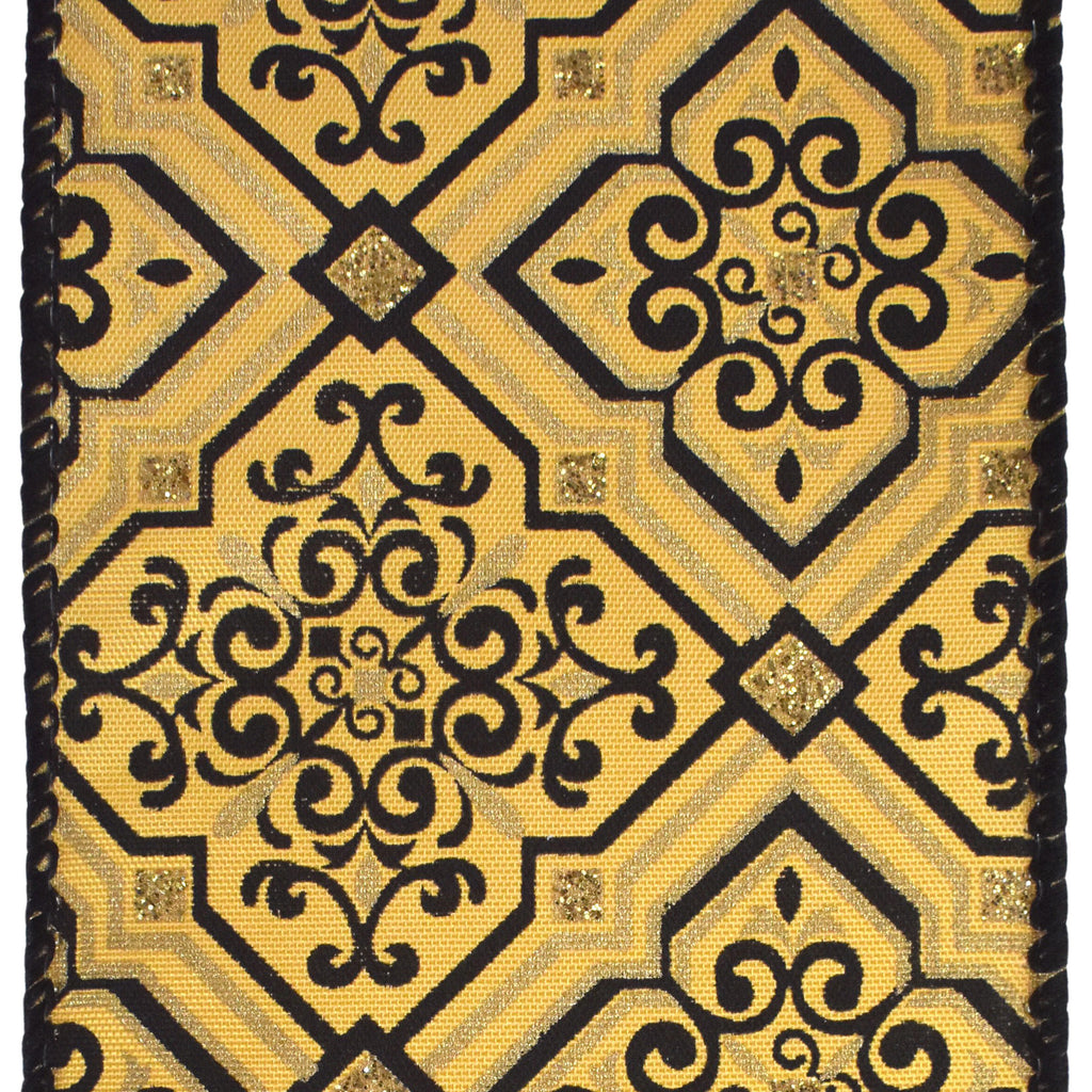 Damask Diamonds Satin Wired Ribbon, 2-1/2-inch, 10-yard