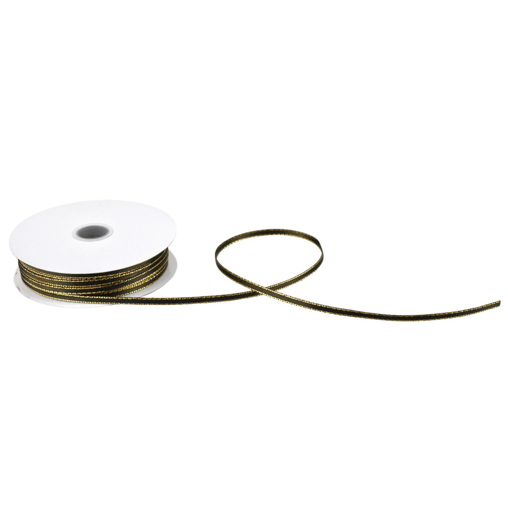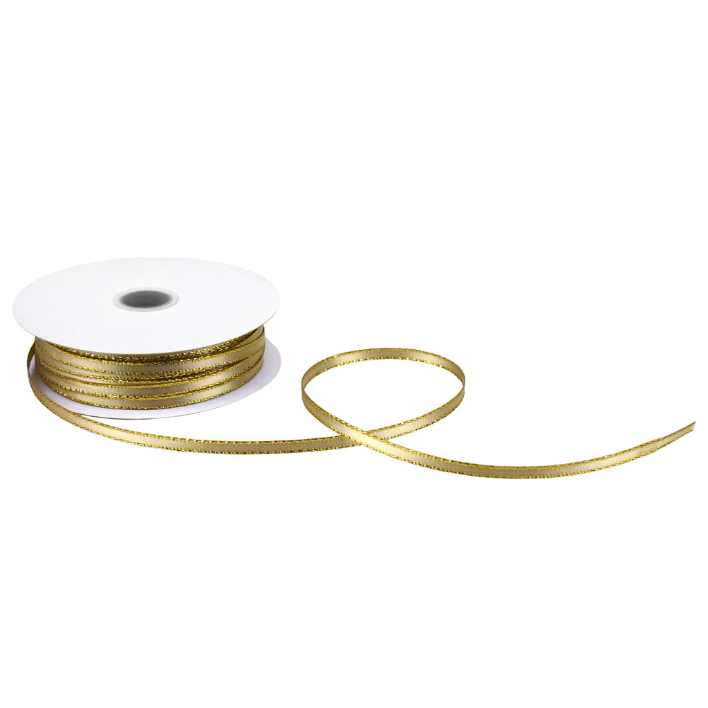 Double Faced Gold Trim Satin Ribbon, 1/8-inch, 50-yard