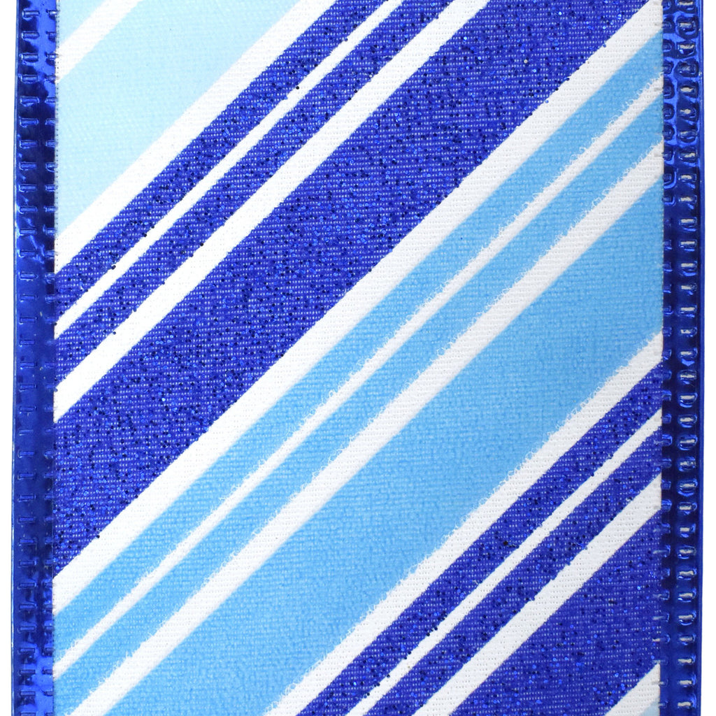 Glittered Diagonal Stripes Metallic Edge Satin Wired Ribbon, 2-1/2-inch, 10-yard