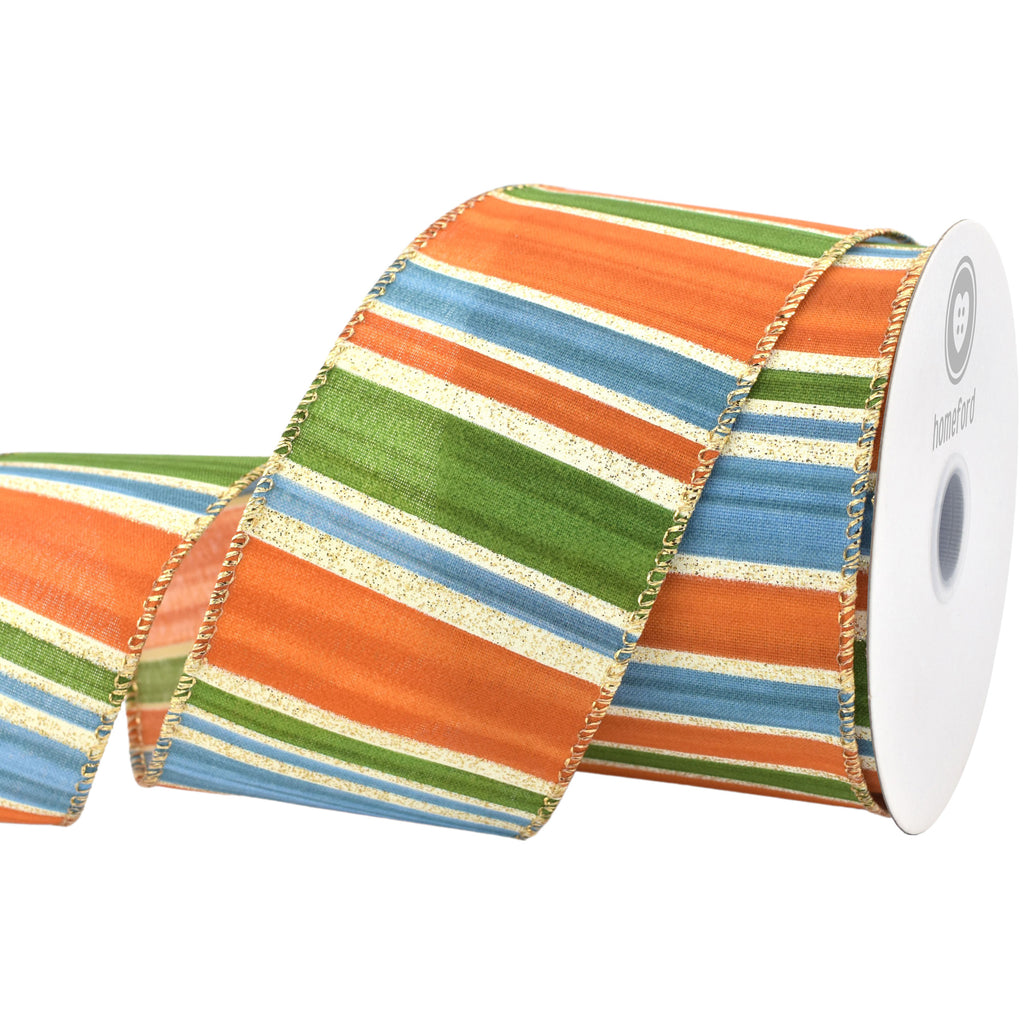 Glittered Fall Color Stripes Satin Wired Ribbon, 10-yard