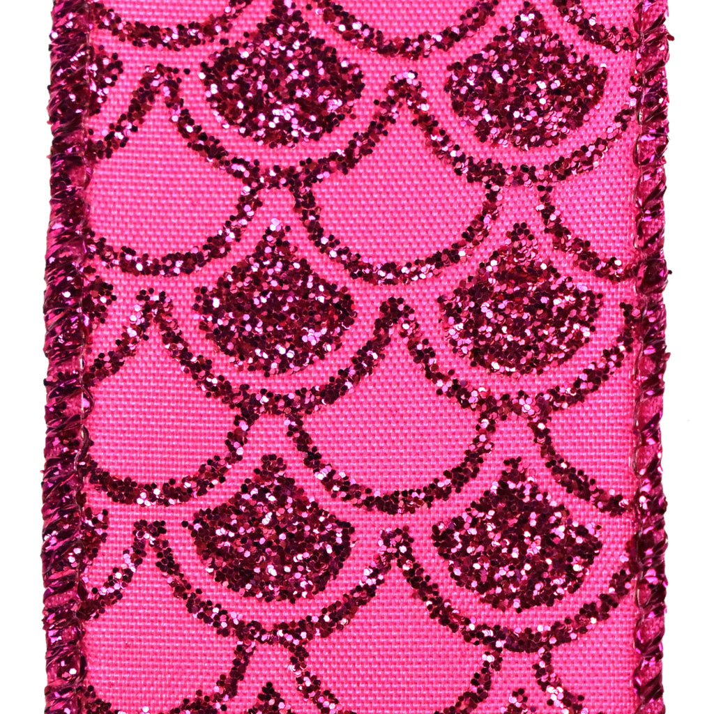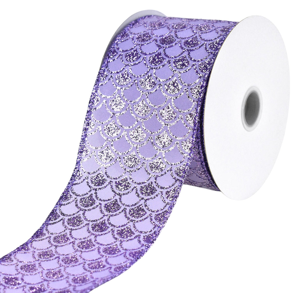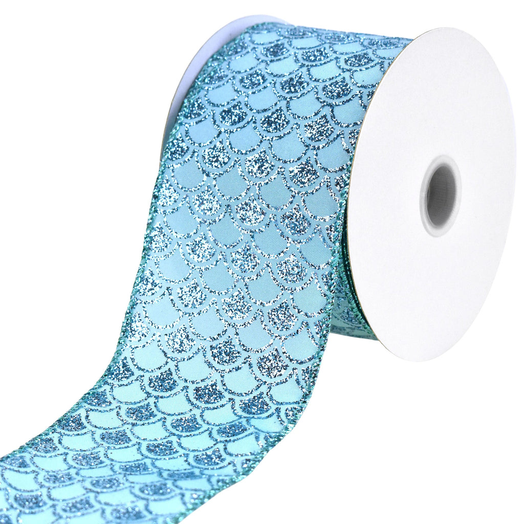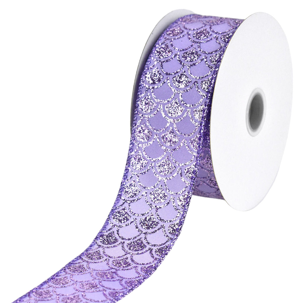 Glittered Mermaid Fish Scale Pattern Satin Wired Ribbon, 10-yard