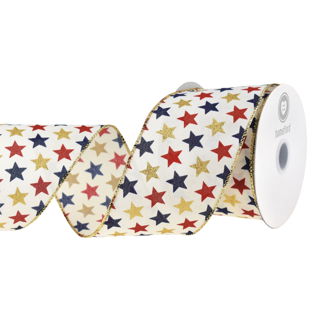 Glittered Patriotic Stars Satin Wired Ribbon, 2-1/2-inch, 10-yard