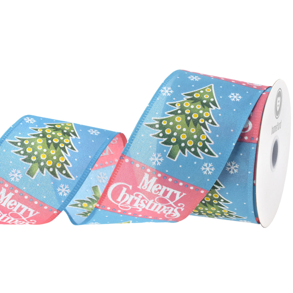 Merry Christmas Tree Pastel Stripes Satin Wired Ribbon, 2-1/2-inch, 10-yard