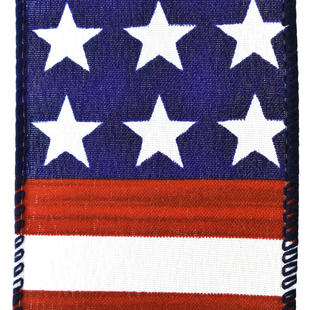 Painted Stars and Stripes Satin Wired Ribbon, 2-1/2-inch, 10-yard