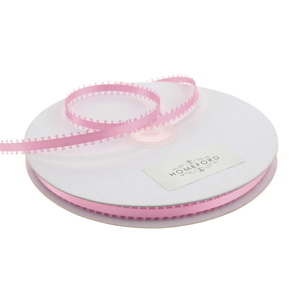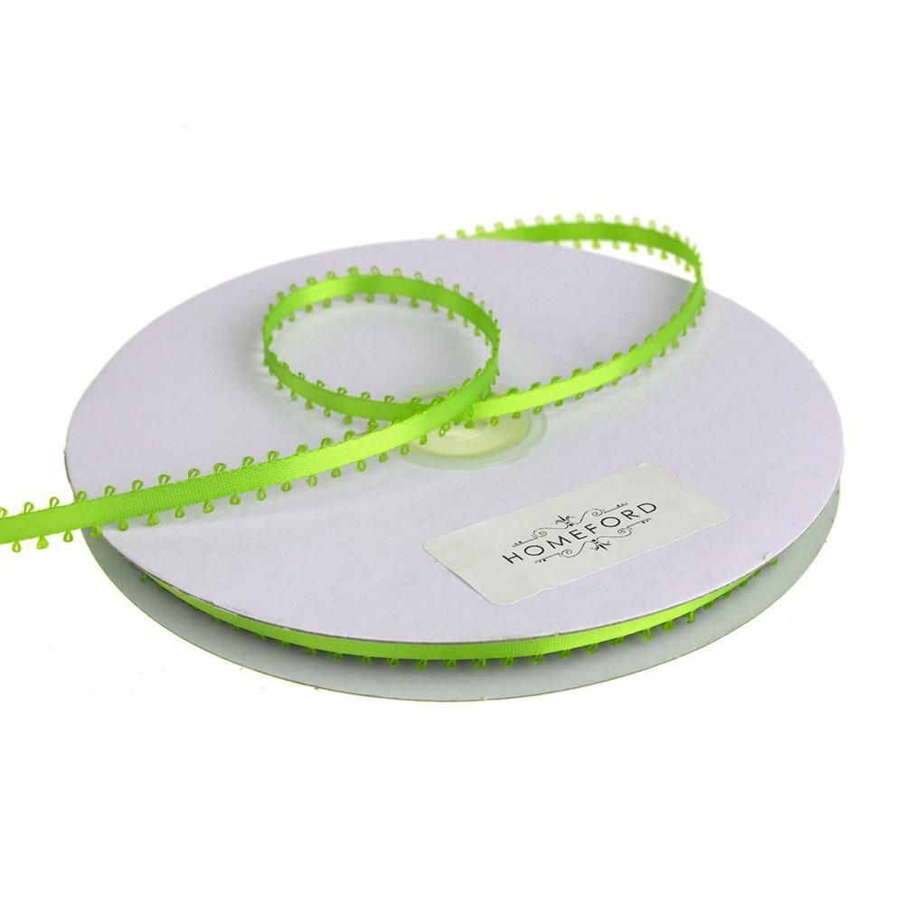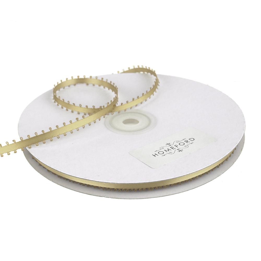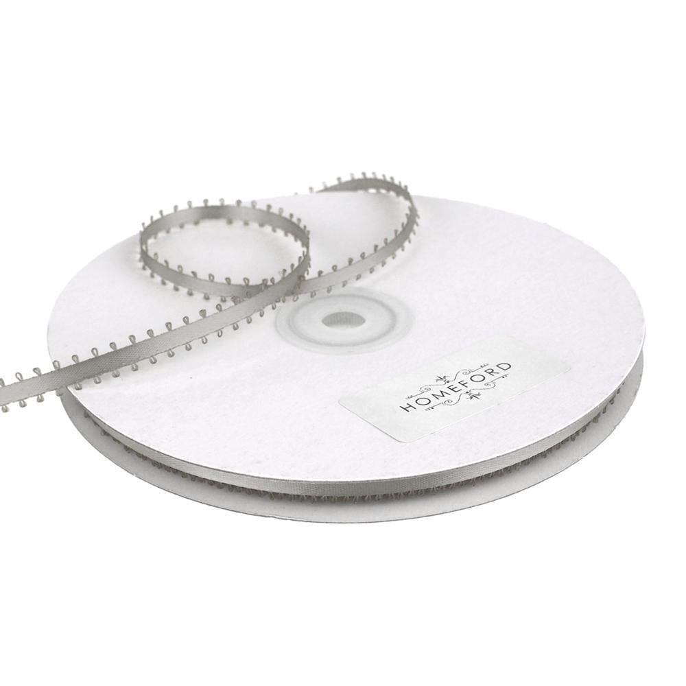 A soft double faced satin ribbon with decorative threaded loops lining the edges that's great for craft/party projects and perfect for packaging.