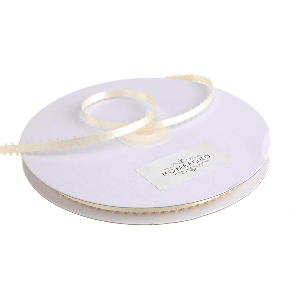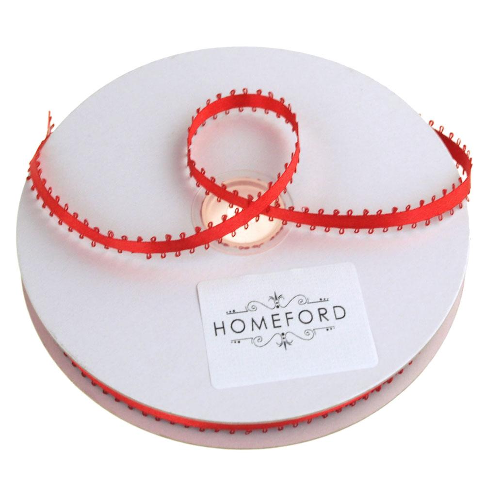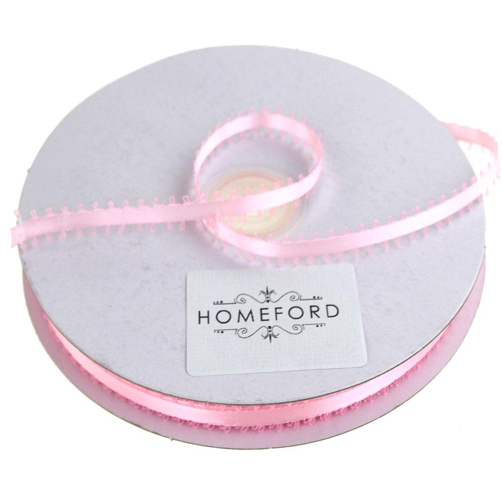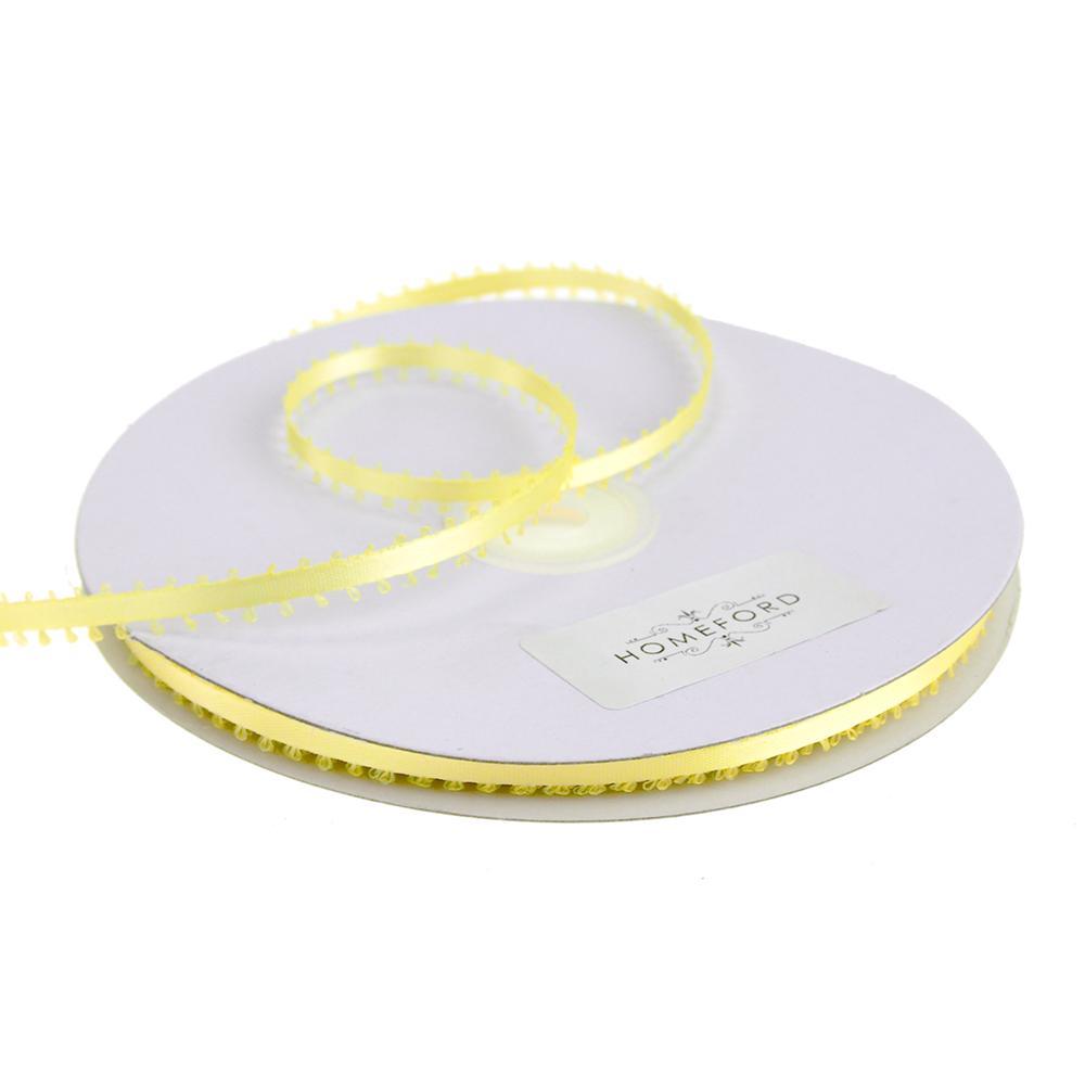 A soft double faced satin ribbon with decorative threaded loops lining the edges that's great for craft/party projects and perfect for packaging.