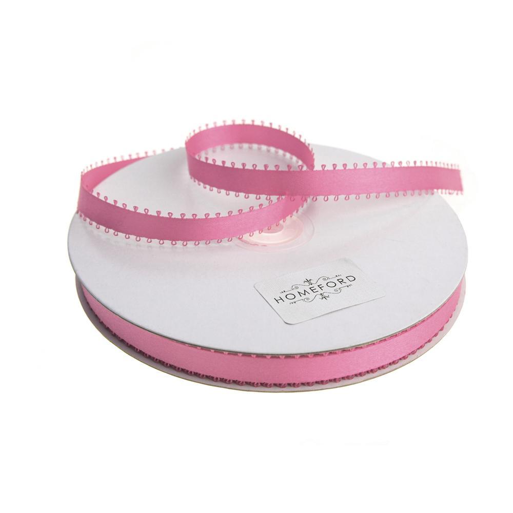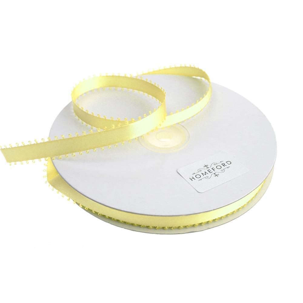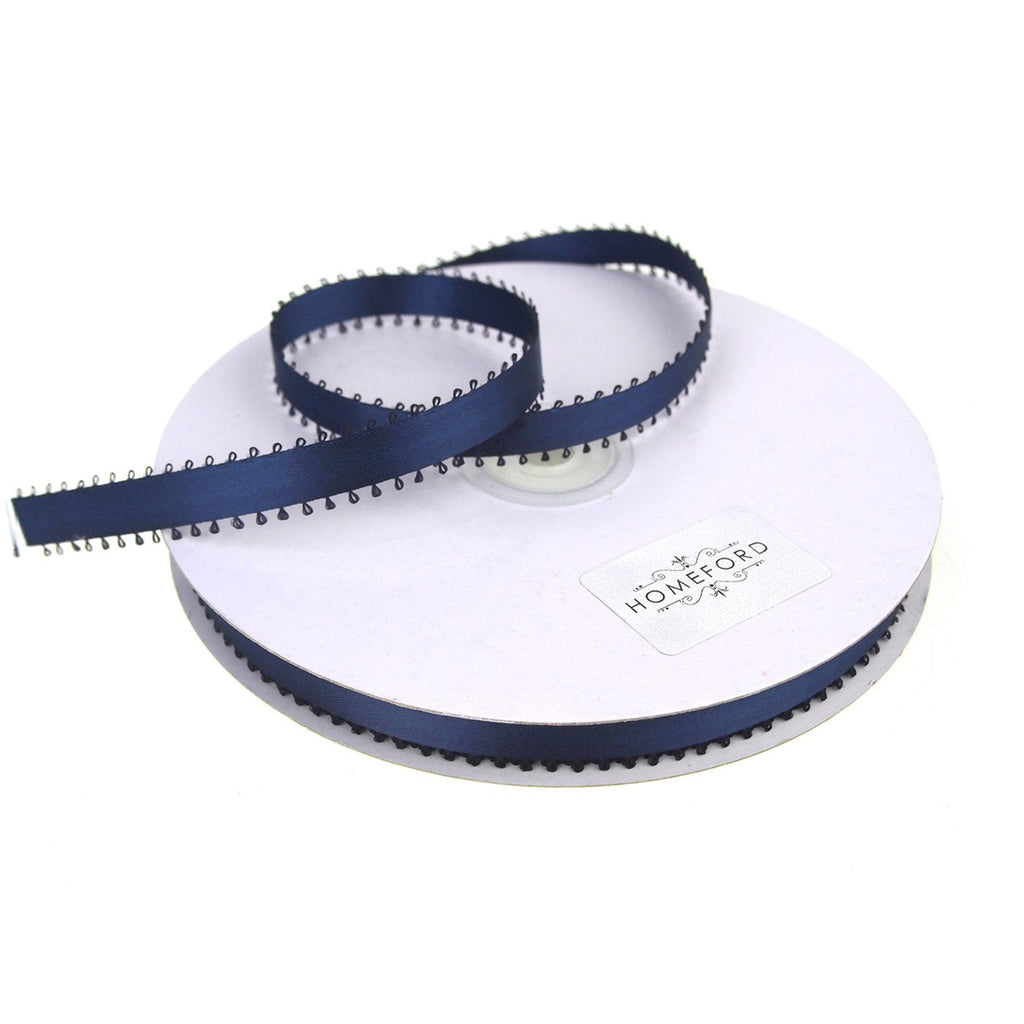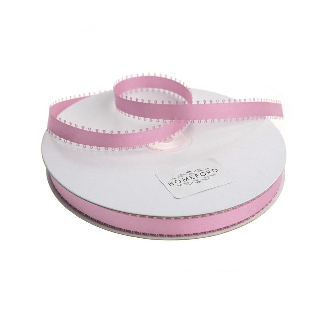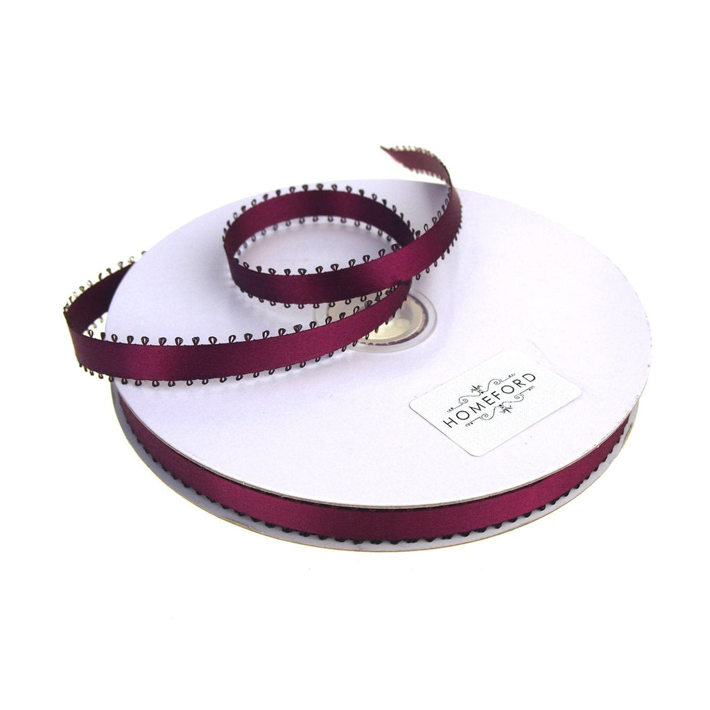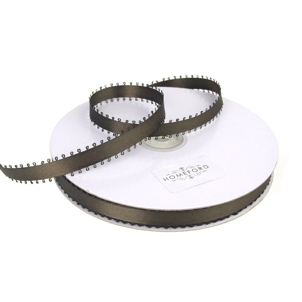 A soft double faced satin ribbon with decorative threaded loops lining the edges that's great for craft/party projects and perfect for packaging.