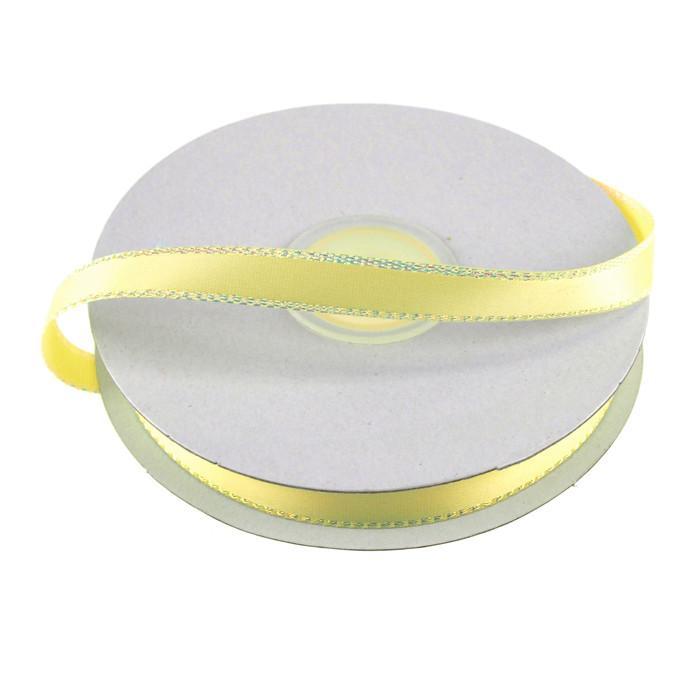 Single face satin ribbon with a sparkling iridescent metallic trim edge are perfect for gift wrapping and crafting.
