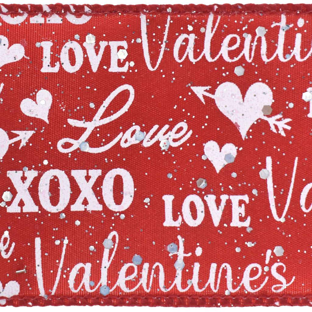 Valentine's Day Glitter XOXO Script Satin Wired Ribbon, 2-1/2-inch, 10-yard