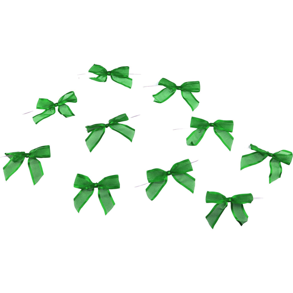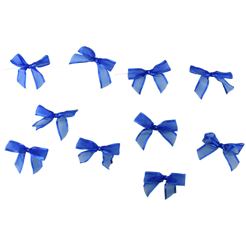 Add the perfect finishing touch to any gift, favor, or decoration! These versatile bows are made of a sheer organza ribbon finished with a satin edge and feature a twist tie that lets you tie them on any object you want to accessorize! Perfect for parties, scrapbooking, DIY projects, and more! Bow Length: 3.5" Bow Width: 2.5" Ribbon Width: 0.875" Twist Tie Length: 5"