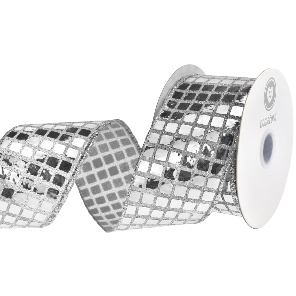 Metallic Disco Ball Sequins Wired Ribbon, 2-1/2-inch, 10-yard