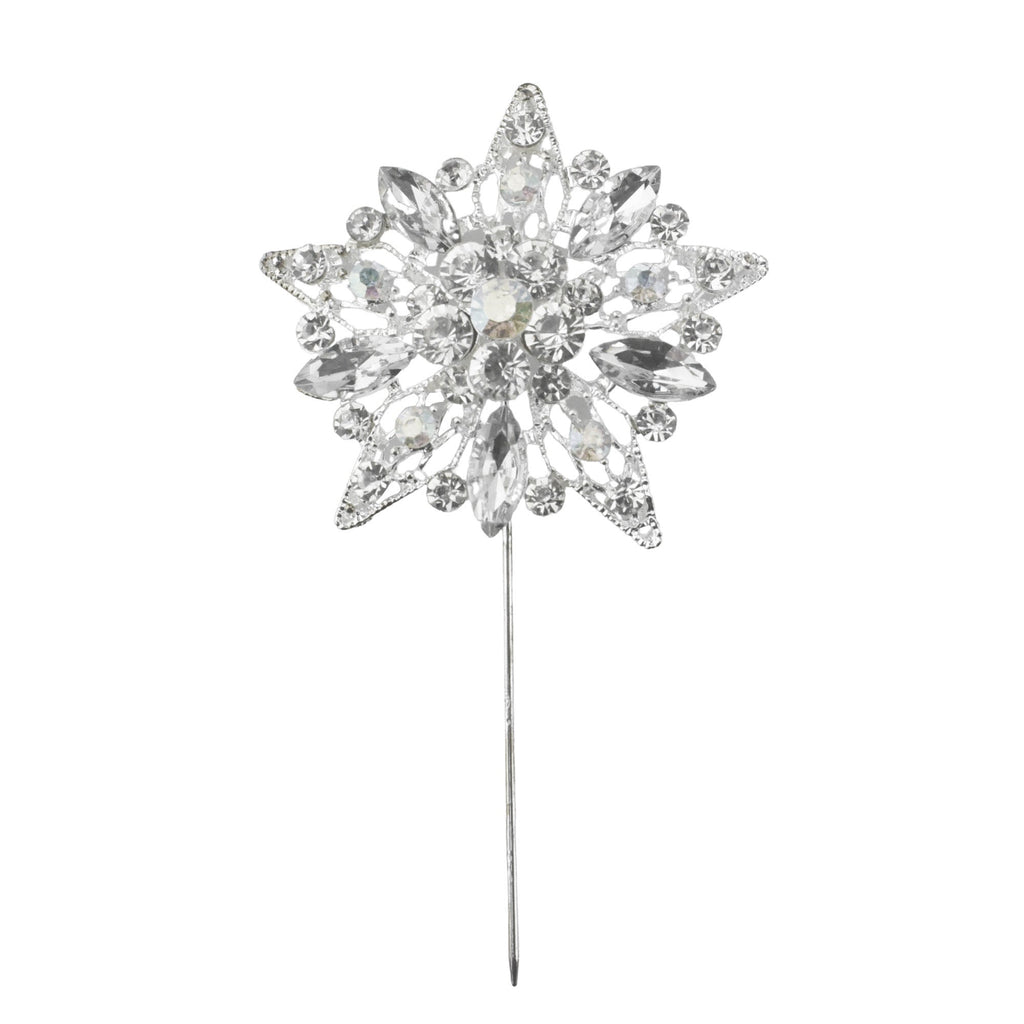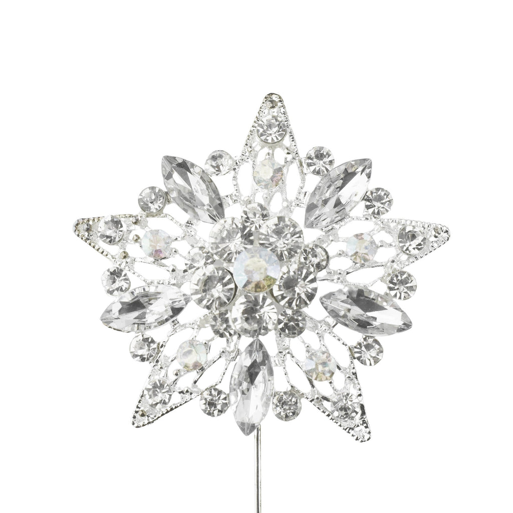 Rhinestone Star Floral Pins, 4-Inch, 3-Count - Silver