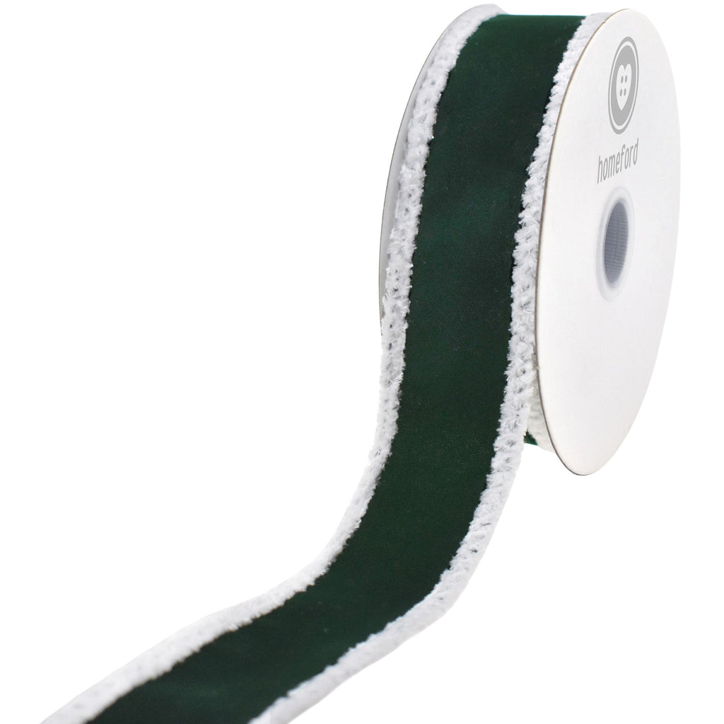 Christmas Velvet Fuzzy Edge Wired Ribbon, 10-yard