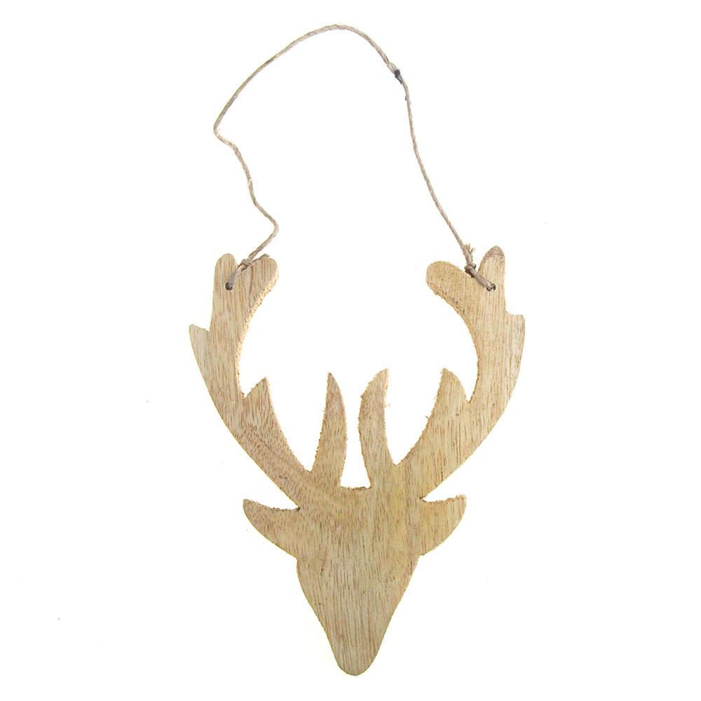 Hanging Distressed Reindeer Head Wooden Christmas Ornament, 5-1/2-Inch