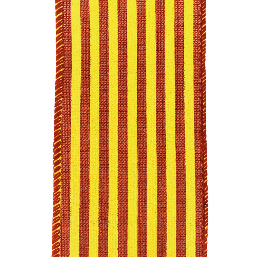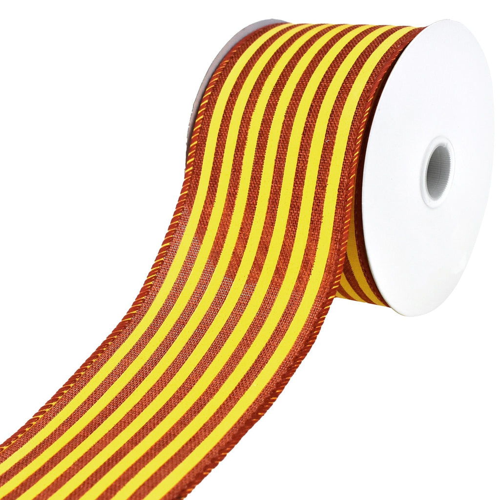 Autumn Cabana Stripes Faux Linen Wired Ribbon, 10-yard, Dark Orange/Yellow
