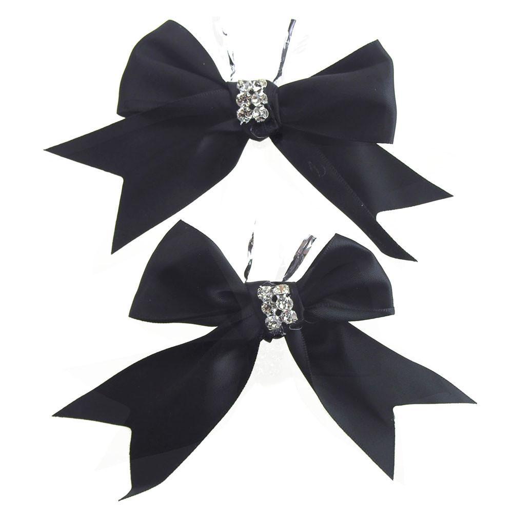 Pre-Tied Satin Bows with Rhinestone, 4-Inch, 2-Piece