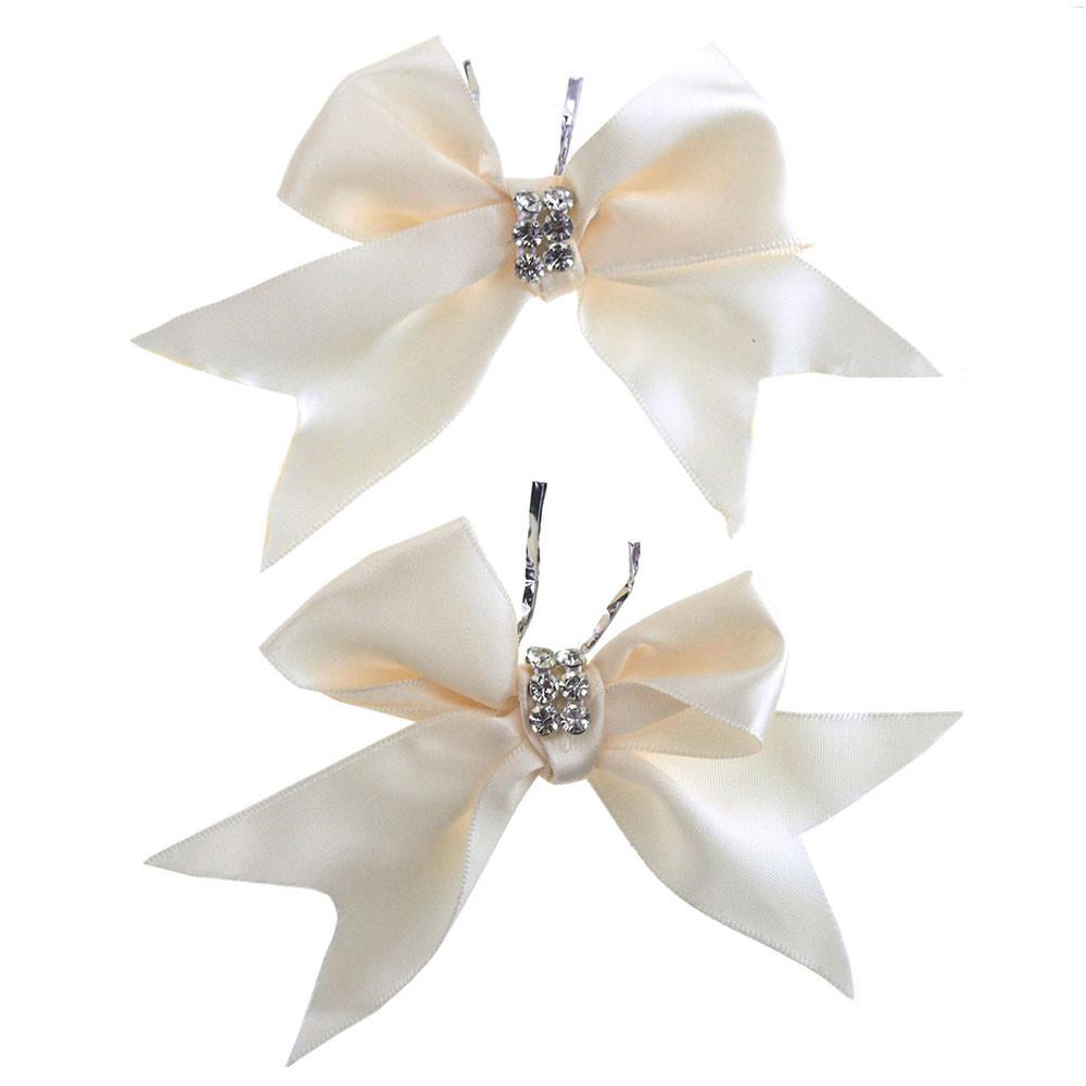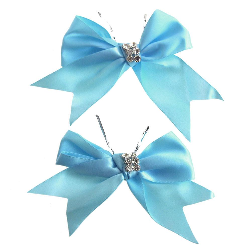 Satin bows comes pre-tied and has rhinestones on center. Bows with adhesive for easy attachment.